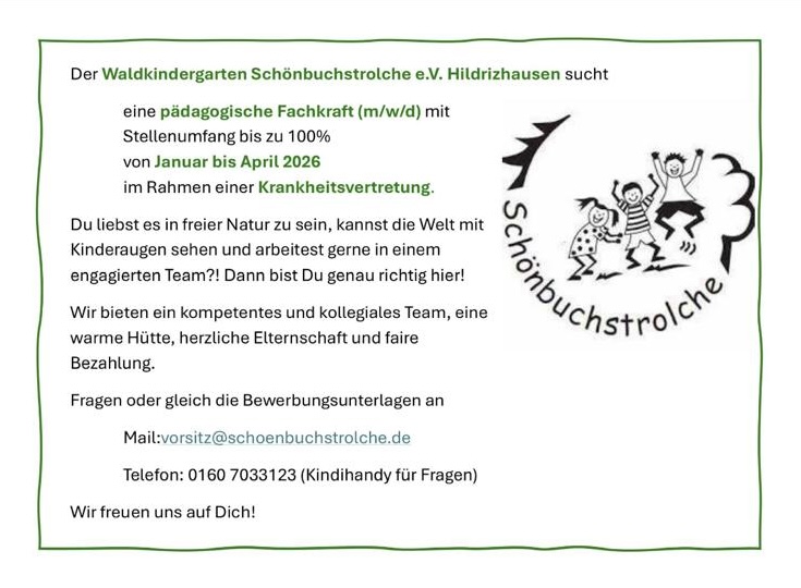 Den Waldkindergarten Schönbuchstrolche in Hildrizhausen gibt es seit mehr als 20 Jahren. Er stellt eine Ergänzung des allgemeinen Hildrizhausener Kindergartenangebots dar. Es werden 20 Kinder im Alter von 3 Jahren bis zum Schuleintritt vormittags betreut. Darüberhinaus besteht an zwei Tagen die Möglichkeit einer Nachmittagsbetreuung. Eine Blockhütte mit angrenzendem Spielbereich bildet den Ausgangspunkt für die Waldbesuche.